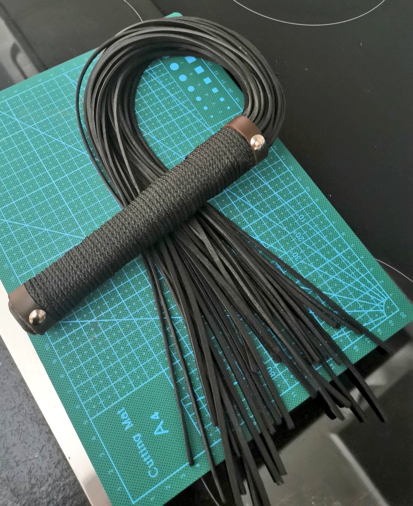 An dem fertigen Ergebnis kann man deutlich sehen, dass es handgemacht ist. Der Griff ist nicht ganz eben, was witzigerweise zu einem fast schon gewollten Gefühl in der Hand sorgt. Ich sehe natürlich jeden Fehler und bin noch nicht zufrieden mit dem fertigen Flogger, aber dafür dass es das erste Mal war und es im Grunde auch wirklich nicht schwer herzustellen ist, bin ich doch sehr begeistert und überlege auch schon, was ich eventuell noch so brauchen könnte in meinem Schlafzimmer.